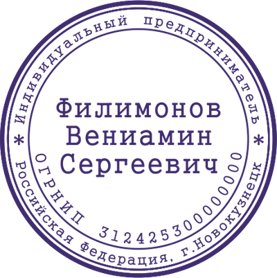 Образец клише печати индивидуального предпринимателя. Клише - это часть печати с зеркальным отображением рисунка. Для полноценного использования печати клише необходимо наклеить на оснастку.