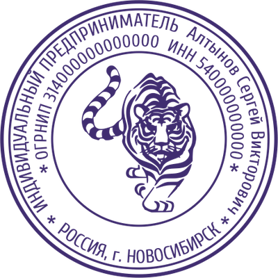 Образец клише печати индивидуального предпринимателя. По запросу заказчика картинку можно заменить. Клише - это часть печати с зеркальным отображением рисунка. Для полноценного использования печати клише необходимо наклеить на оснастку.