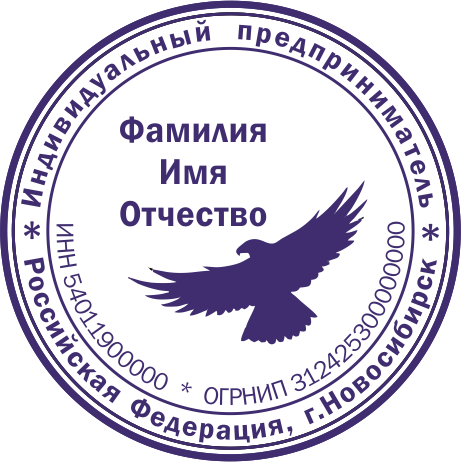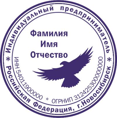 Образец клише печати индивидуального предпринимателя. Клише - это часть печати с зеркальным отображением рисунка. Для полноценного использования печати клише необходимо наклеить на оснастку.