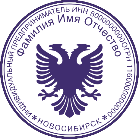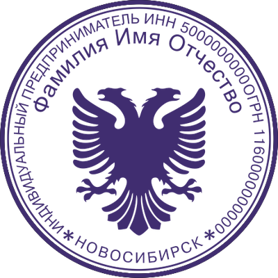 Образец клише печати индивидуального предпринимателя. Клише - это часть печати с зеркальным отображением рисунка. Для полноценного использования печати клише необходимо наклеить на оснастку.